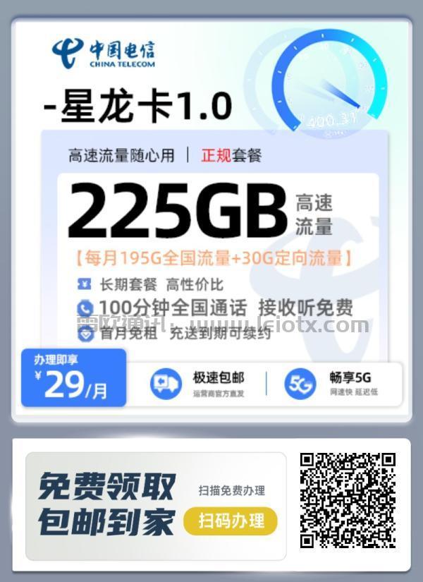 中国星龙卡29元套餐:225G大流量+100分钟通话 首月0元体验攻略