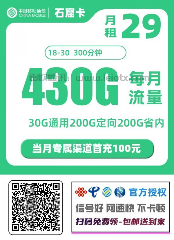 如果你是学生、上班族,或每月流量消耗大(尤其在省内活动),且希望月租稳定、无隐形消费,中国移动石窟卡(移动神卡)是优选——430G流量满足“流量自由”,300分钟通话覆盖基础沟通,优惠后19-39元/月的资费,性价比远超多数常规套餐。