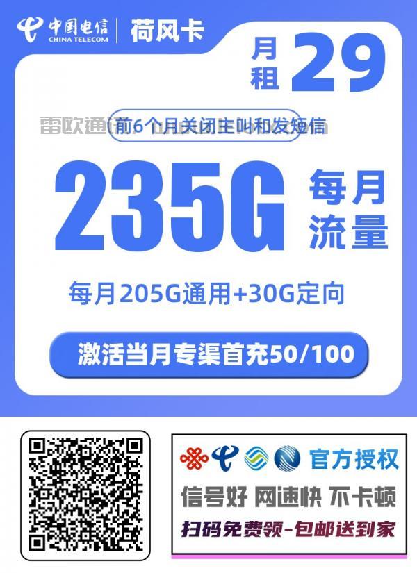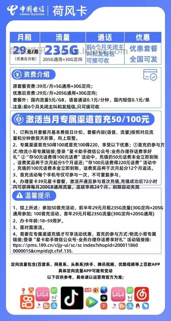 电信荷风卡29元享235G大流量!前6个月限时优惠,速看详情