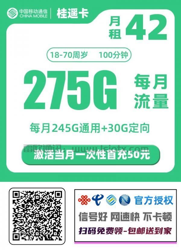 桂遥卡上线!275G大流量+100分钟通话,月租仅42元起(上海专属)