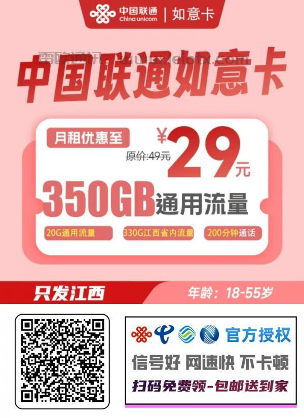 近期,中国联通推出“如意卡喜餐”优惠套餐,月租仅需29元,即可享受350G大流量和200分钟通话,性价比极高,适合江西地区用户办理。以下是详细内容,一文看懂!