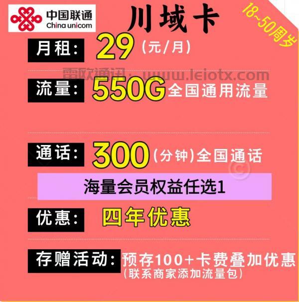 2025高性价比神卡推荐】联通川域卡29元享550G+300分钟+会员,四年优惠稳占流量C位!