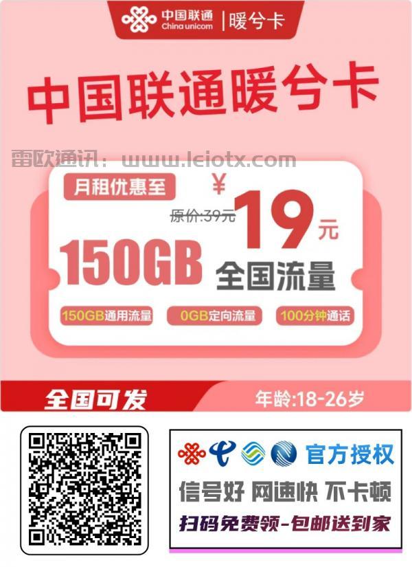 中国联通推出高性价比套餐——暖兮卡!月租仅需19元,每月包含150G全国通用流量+100分钟通话,优惠期长达4年,到期可续约。学生党、上班族必备神器,速来了解!