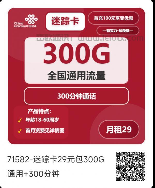 · 套餐内容:每月包含300G全国通用流量 + 300分钟全国通话。